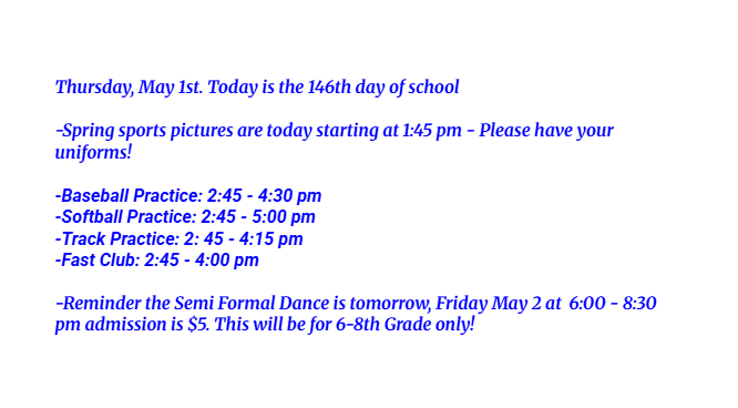 Winter Sports Pictures: Tuesday, January 6, 2025, Starting @ 1:45pm. Make sure uniforms are brought to school that day!